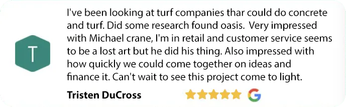 "Mitch and his crew showed up on time, were efficient and professional. My yard was transformed and looks better than I ever imagined!!! The price was phenomenal for the product, and I had many options to choose from. I highly recommend Mitch to anyone considering turf for your yard!!"